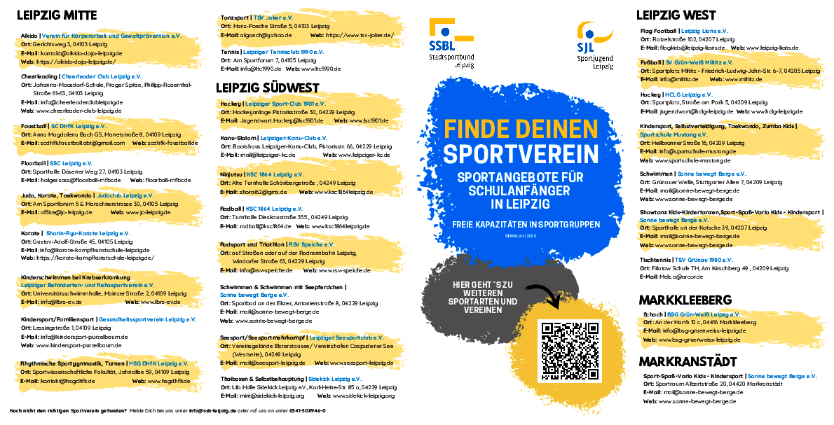 Zudem wird erstmals die Weitergabe von Flyern an Eltern während der Vorschuluntersuchung durch das Gesundheitsamt möglich sein! So dass hoffentlich viele Kinder den Weg in die Leipziger Sportvereine finden!